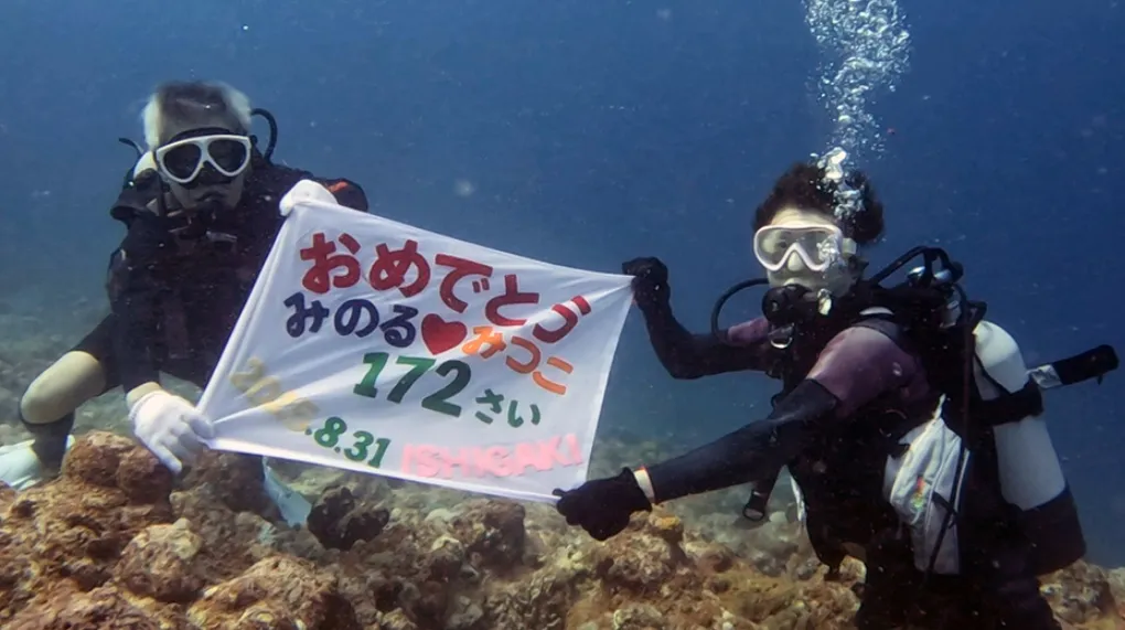 一对出身长崎县、退休后移居冲绳县的夫妻——天野实(89岁)与天野美津子(84岁),向吉尼斯世界纪录“水肺潜水最高龄夫妻(合计年龄)”发起挑战,最终以“合计年龄173岁零17天”的成绩获得认证。